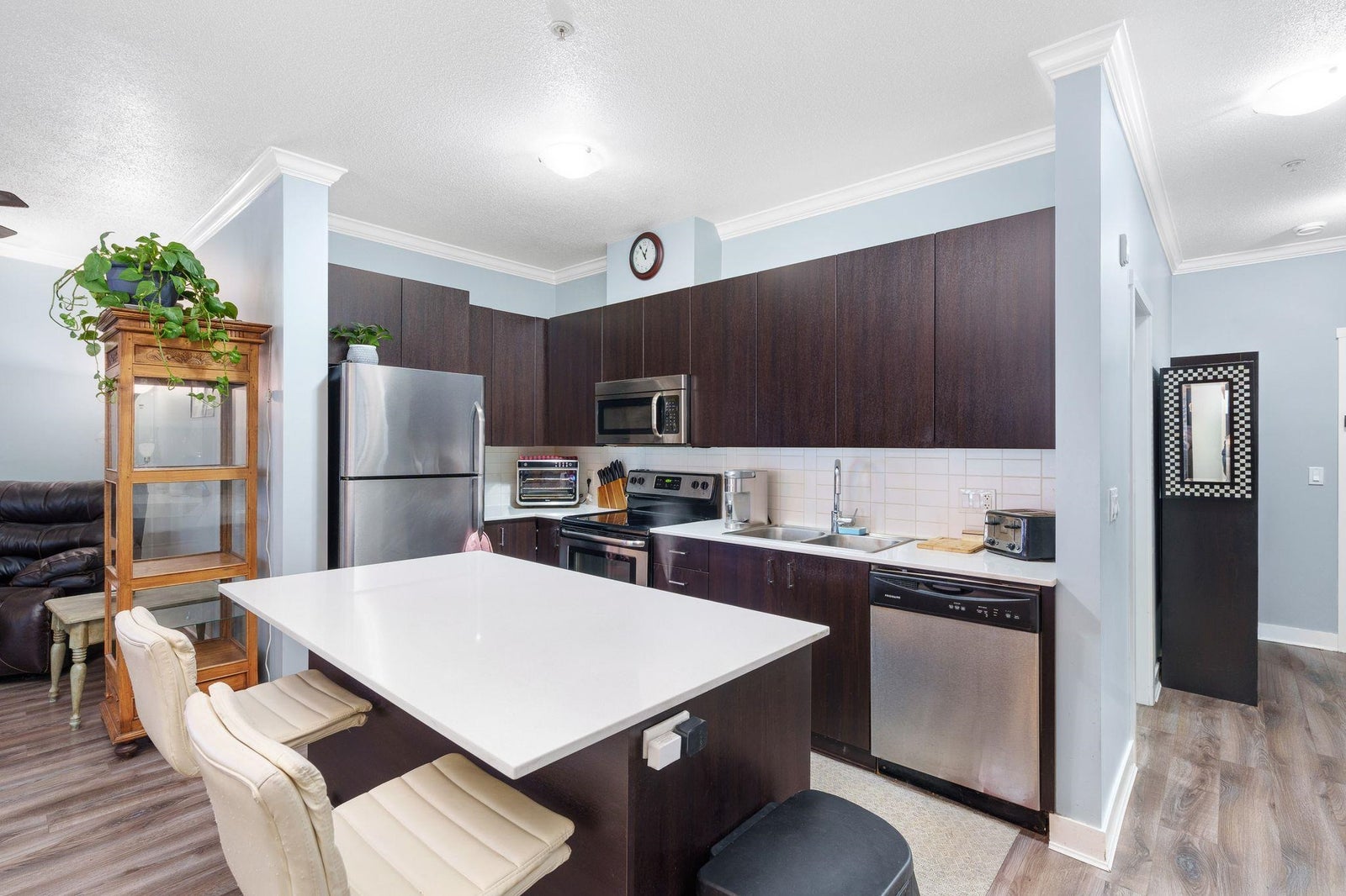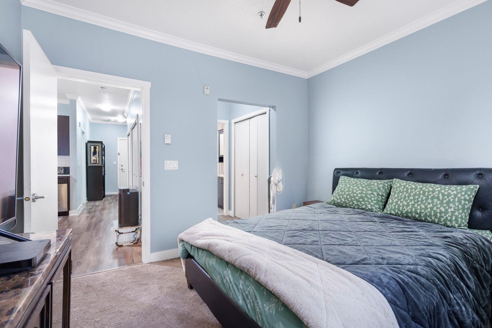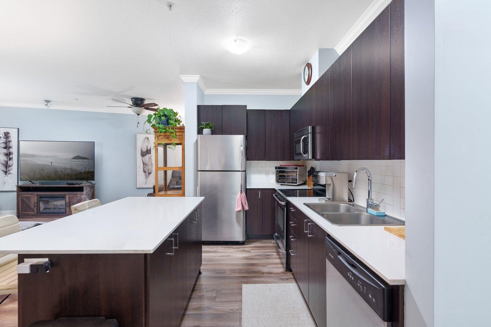 This one bedroom plus den at The Serenade offers the flexibility of a two-bedroom style layout, with a well-sized den that can easily function as a second bedroom. With 955 square feet of interior space and a sunny south-facing balcony with park and mountain views, it’s one of the largest floorplans in the building. The open living and dining area connects seamlessly to a polished kitchen with quartz counters, quality stainless appliances, and fresh updates including new flooring, paint, and carpet. Located next to Douglas Park and steps to Langley’s best restaurants, cafés, shopping, and transit. A fitness centre and residents’ clubhouse round out a home that works for real life.